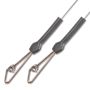 Diese Drahtspuren werden mit japanischem siebensträngigem Draht mit mattschwarzen Wirbel der Größe acht und schwarzen Kupfer-Quetschhülsen montiert. Die Quetschhülsen werden dann mit einer Spezialmaschine mit präzisem Luftdruck gespannt, damit sie perfekt fest gequetscht werden. Die Quetschungen werden dann mit Silikon ummantelt, um die Sicherheit und die Präsentation des Riggs zu gewährleisten. Sie haben einen sicheren Sicherheitsclip, um Köder schnell und einfach zu befestigen. Sie sollten immer eine Drahtspur über dem Köder einsetzen, um sicherzustellen, dass Sie weniger Fische verlieren, denn Hechte durchschneiden Mono im Handumdrehen.