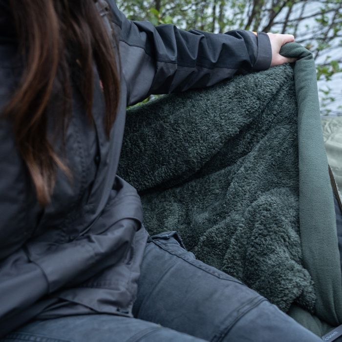 The lining of the Advanta 4 season sleeping bag is fleece meaning its super warm and comfortable and is exceptionally efficient at trapping warm air inside the bag. The zips on both sides are large, oversized crash zips meaning a quick exit is easy, they also finish a little way up from the foot end of this fleece sleeping bag helping to maintain a hotspot down the bottom end to aid keeping your feet warm during cold nights.