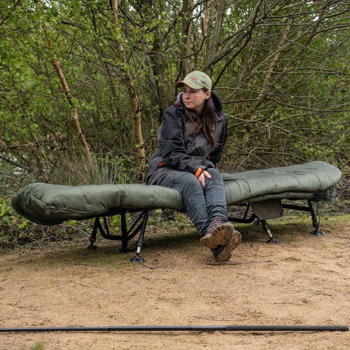 The Design of this fishing sleeping bag means it can be fitted to both the top and bottom of a standard size fishing bedchair using the elastic loops at either end of the bag as well and the retention strap in the middle of the bag to eliminate twisting during the night and on quick exit of the bag when a carp bites.