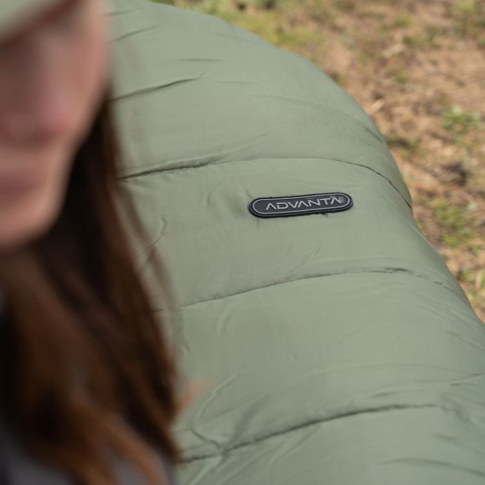 The filling inside the Advanta 4 season sleeping bag is silicone treated hollow fill material which can trap heat inside the bag and keep you warm and toasty all night long even in harsh winter conditions. The outer material is made using the same green pattern as many of the other items in the Advanta range so you can ensure your fishing gear matches perfectly.