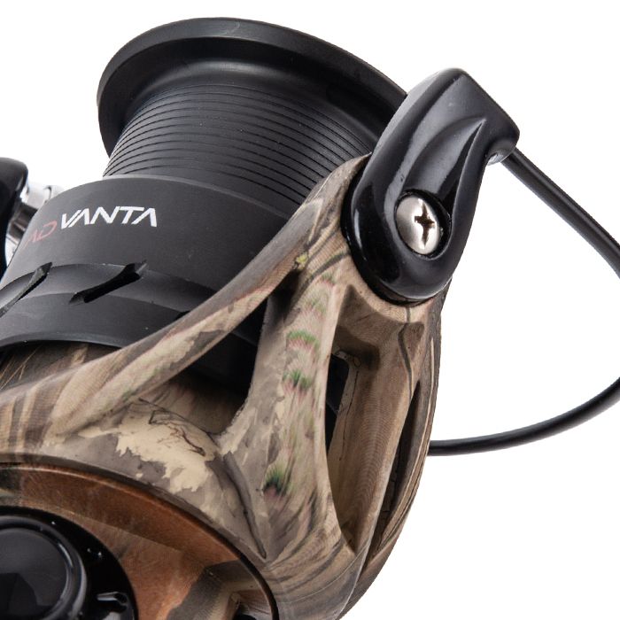 Beide Modelle der Advanta Camo Freilaufrolle (5000 & 6000) werden mit 2 Aluminiumspulen geliefert, eine tiefe Spule und eine mitteltiefe Spule. Diese tiefere Spule eignet sich mehr für herkömmliche, dickere Mono, aber man muss nur so viel der monofilen Schnur aufspulen, dass die Rolle bis zum Rand gefüllt ist. Die mitteltiefe Spule ist ideal, wenn man leichtere Schnüre oder Braid benutzt, was bedeutet, dass man die Spule einfacher und kostengünstiger mit Schnüren mit geringerem Durchmesser füllen kann. Beide Spulen sind mit schnurfreundlichen Schnurclips ausgestattet, die das genaue Auswerfen erleichtern und dafür sorgen, dass Sie wirksam über Ihren Köderbereich fischen. Die Kurbel mit Ihrem T-Knauf bietet eine ausgezeichnete Kraft beim Einholen