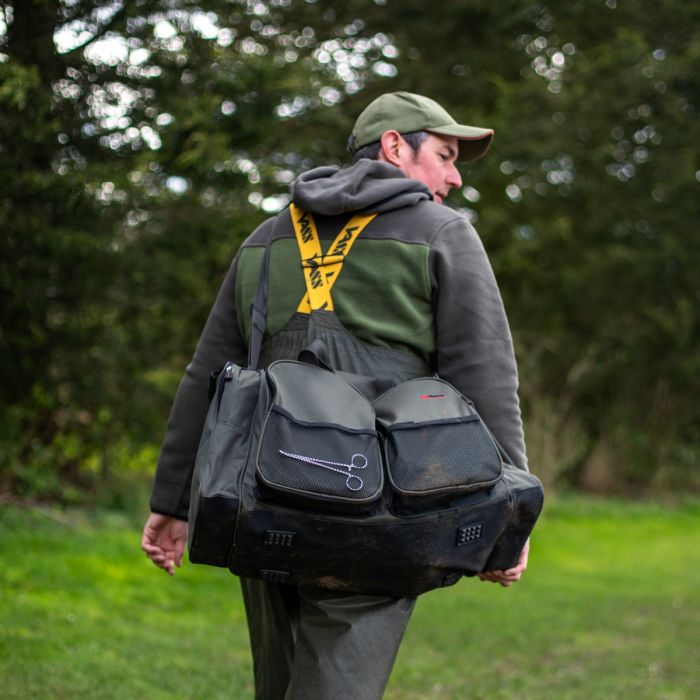 Mit vier Außentaschen für z.B. Tackleboxen, Banksticks und Waagen und einem außergewöhnlich geräumigen Hauptfach, in dem Sie Ihre Kleidung und den eingepackten Köder und noch mehr verstauen können, können Sie mit dieser Tasche alles einpacken, was Sie für einen ereignisreichen Aufenthalt am Wasser benötigen, ohne zu viel Platz auf Ihrer Karre oder in Ihrem Bivvy zu beanspruchen.