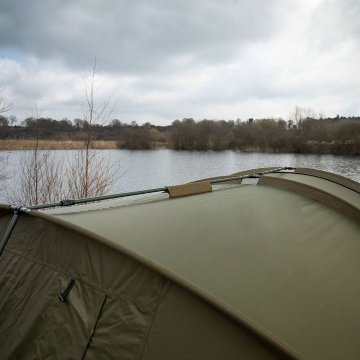 Die Struktur ist stabil mit einem Drei-Stangen-Rahmen aus festem 16 mm dickem 6061 Aluminium, der schnell und einfach aufgebaut werden kann und auch gegen starken Wind fest sitzt. Das Bivvy ist außerdem mit verstärkten Heringen und Inline-Spannstangen ausgestattet, damit es gesichert ist und gleichzeitig jeglichen Rissen durch die Spannung standhält. Advanta hat das Bivvy großzügig mit hochbelastbaren T-Heringen für den Einsatz in härterem Gelände ausgestattet.