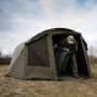 Alternativ kann das Bivvy auch an die wärmere Jahreszeit angepasst werden, indem man die zurückklappbaren Fronteinsätze mit Schnallenhalterungen am Bivvy befestigt und die vorderen und hinteren Mückenschlitze am Bivvy und am Überwurf auch. Das sorgt für Belüftung und hält gleichzeitig die Mücken fern. Es gibt auch drei Türoptionen, die mit dem Produkt in grün, durchsichtig oder als Moskitonetz geliefert werden, damit Sie sich an das Wetter gewöhnen können. Das ist besonders ideal für längere Ausflüge, d.h. das Endurance Bivvy ist die perfekte Lösung für den ultimativen Ganzjahresangler.