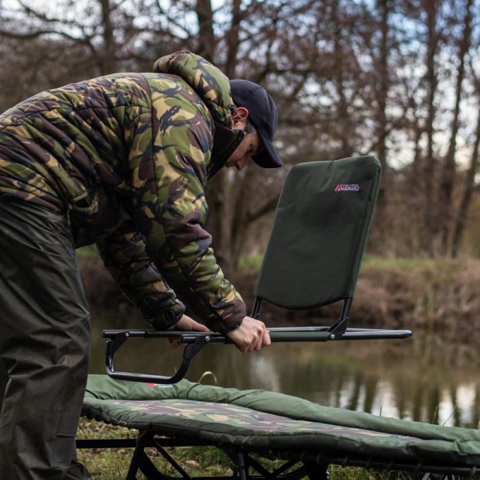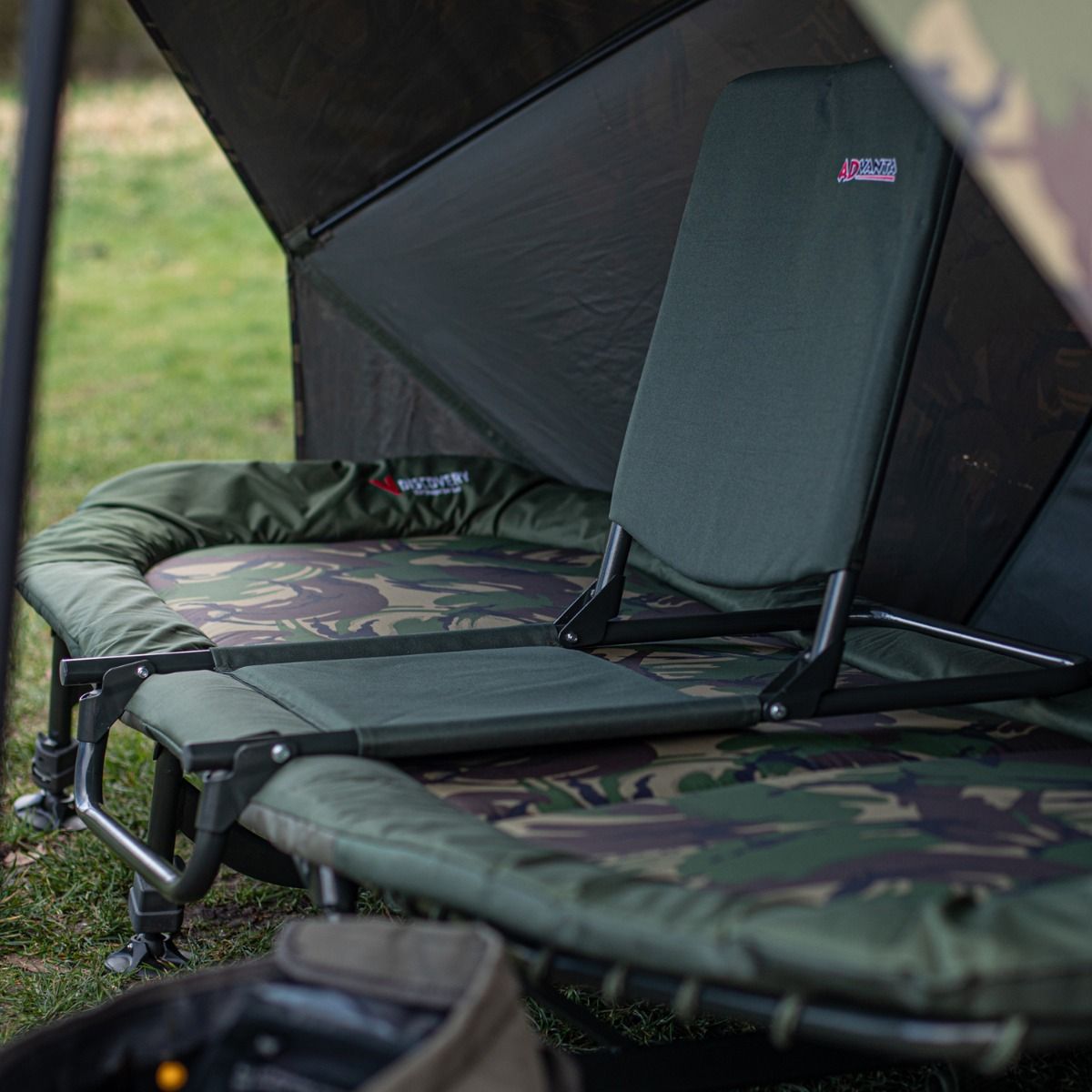 Der Advanta Bedchair Buddy ist eine ausgezeichnete Alternative für Angler, die für ihre nächtlichen Angelsitzungen nicht sowohl einen Bettstuhl wie auch einen Tagesstuhl ans Ufer tragen möchten. Es handelt sich im Wesentlichen um einen Sitz mit Rückenlehne, der über Ihre Liegefläche geschoben wird, damit Sie das Wasser beobachten können. Er ist ideal für den Einsatz in einem offenen Unterschlupf, Bivvy oder Shelter.