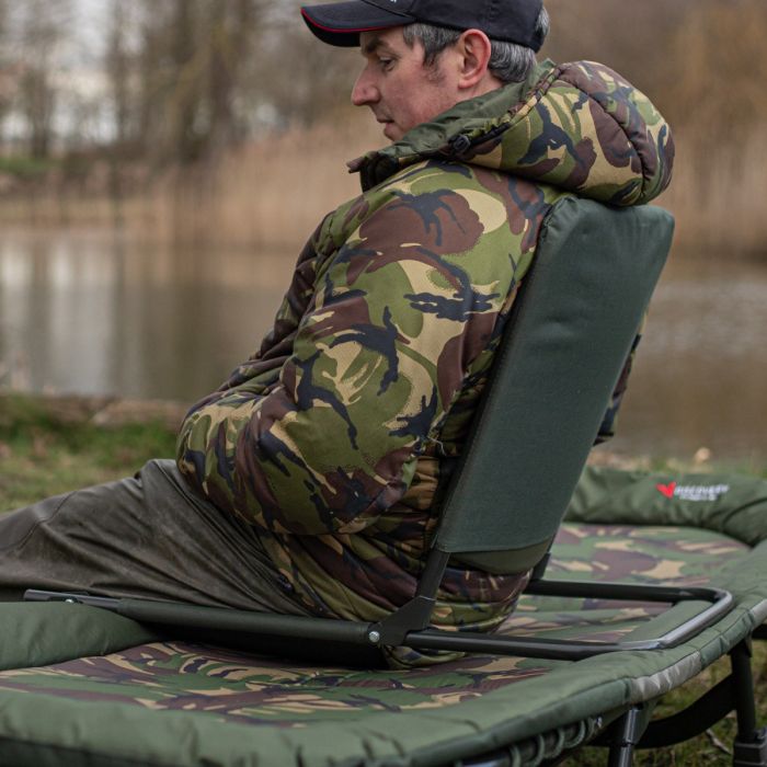 Der Buddy selbst ist mit einem leichten Aluminium Rahmen ausgestattet, der so konzipiert wurde, dass er sich flach zusammenfalten lässt. Außerdem bietet er eine gute Rückenstütze und ist außergewöhnlich einfach aufzustellen. Er eignet sich auch gut als niedriger Stuhl und dafür sorgt, dass Sie bei jedem Bissalarm immer auf dem Laufenden sind.