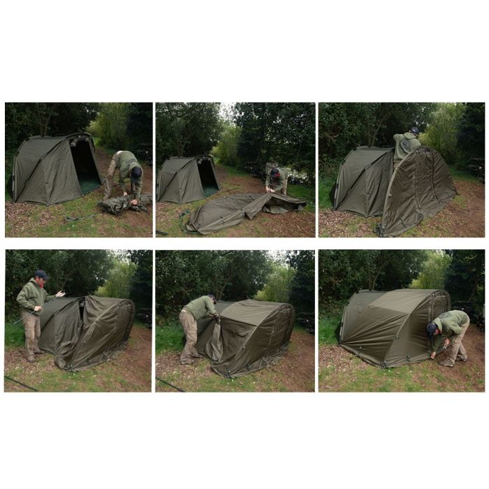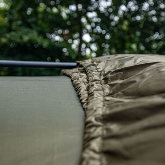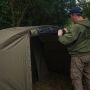 Diese Bivvy-Veranda ist bei starkem Regen, wie wir ihn in Europa häufig erleben, wasserdicht, und die aufrollbare Front/Tür mit Schnallenhalterungen erleichtern und sichern die Öffnung, damit Sie die Tür voll aufmachen oder eine Öffnung im Stil eines Briefkastens schaffen können. So können Sie Ihre Angelruten immer im Auge behalten, und das Bivvy auch schnell verlassen, sollte der Bissanzeiger Alarm schlagen.