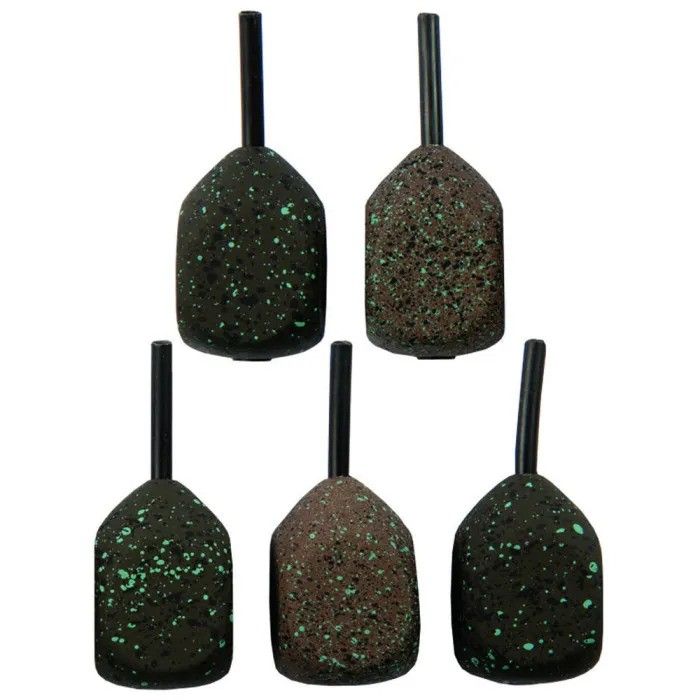 Jede Packung enthält fünf Bleie in verschiedenen Farbvariationen, darunter eine braune speckled matte Oberfläche, die perfekt auf See- oder Flussbetten abgestimmt ist, sowie eine graue Stein-/Kies-gesprenkelte Farbe für Kies- oder Lehmstellen. Diese Vielfalt ermöglicht es Ihnen, Ihre Ausrüstung an verschiedene Umgebungen anzupassen und Ihren Erfolg zu maximieren.