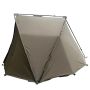 Mit maximiertem Innenraum passt dieses Angelzelt perfekt in enge Spots am Ufer, ohne dabei zu viel Bodenfläche einzunehmen. Mit seinen großzügigen Abmessungen von 135 cm Höhe, 270 cm Breite und 230 cm Tiefe bietet es ausreichend Platz, um Ihre Angelliege, Ihre Angelausrüstung und Ihre persönlichen Gegenstände sicher aufzubewahren.