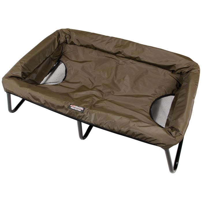 Die Protector-Cradle verfügt über einen tiefen Matratzenabschnitt für erhöhten Komfort bei der Fischpflege. Das Material in der Mitte besteht aus PVC, ist wasserdicht und lässt sich leicht abwischen. Das Design hilft dass der Fisch nicht aus der Wiege/von der Matte springen und sich verletzen kann und die Rahmenpolsterung stellt sicher, dass sich Ihr Karpfen nicht an scharfen Ecken oder Kanten der Matte verfangen kann.