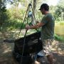 Das Stativ wird mit einer Tragetasche aus Nylon geliefert, in der das Stativ gut verstaut ist und die den Transport wesentlich erleichtert. Das Gesamtgewicht des Stativs beträgt 3 kg, damit Sie es beim Aufstellen am Ufer und Angelplatz leicht anheben und bewegen können.