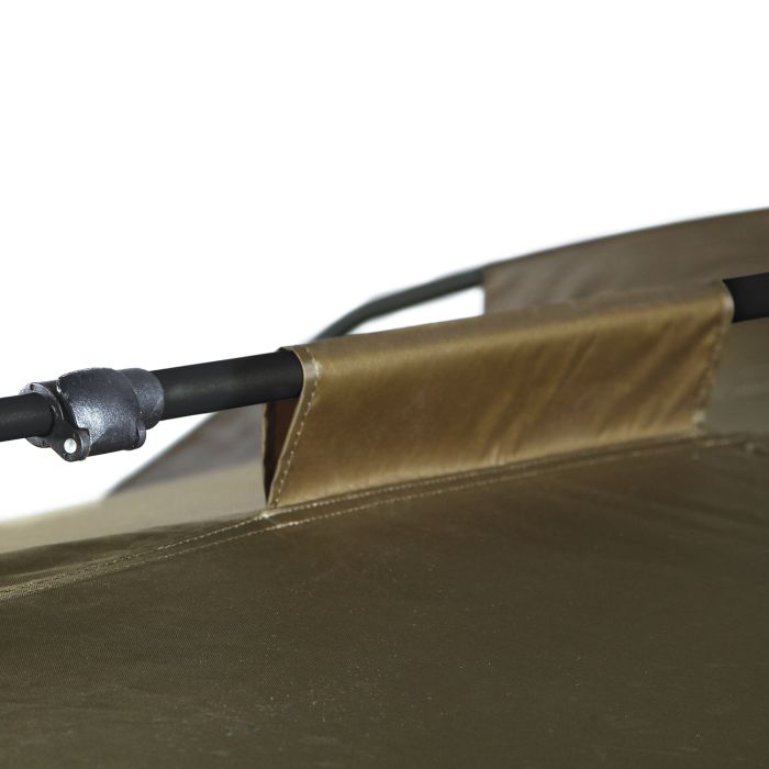 Die Bivvystruktur bietet einen großen Schirm, der vor Regen schützt, sowie Regenrinnen, die das Wasser aus den Vertiefungen abfließen lassen. Da das Bivvy aus 5000HH, 210D Polyester und mit versiegelten Nähten hergestellt ist, kann es auch bei Regen trocken bleiben. Dieses erstklassige wasser- und winddichte Material sorgt dafür, dass eine Übernachtung nicht durch mögliche Lecks ruiniert wird.