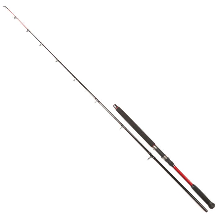 The Advanta ST Boat Rod range have been built using a blank construction that sees two materials perfectly blended to offer the ultimate fishing rod for anglers who fish for a variety of saltwater species such as pollack, bass and cod while boat fishing. The Advanta ST (solid tip) boat rods feature a fibreglass tip section that is seamlessly blended into the main part of the blank to offer durability at the tip section and unparalleled bite detection. The sea fishing rods feature a short butt and long tip section make up meaning they can handle large fish due to the power in the butt of the rod with ease and absorb even the most savage runs and headshakes without pulling hooks out thanks to the long tip section. The Handle of these Advanta boat rods feature a laser etched foregrip and screw lock reel seat to ensure your fishing reel is securely fastened to the sea rod. The Advanta ST boat rods feature ceramic lined guides that are suitable for both monofilament and braided fishing lines. This range of boat rods consists of 2 models which are both 7ft 5 inch in length and with a rating of 12-20lb and 20-30lb. The 12-20lb class rod is a perfect rod for smaller species such as Bream, flatties and Bass when using lighter lines and more finesse to temp a bite while the 20-30lb class rod is better suited to larger fish such as pollack and cod.