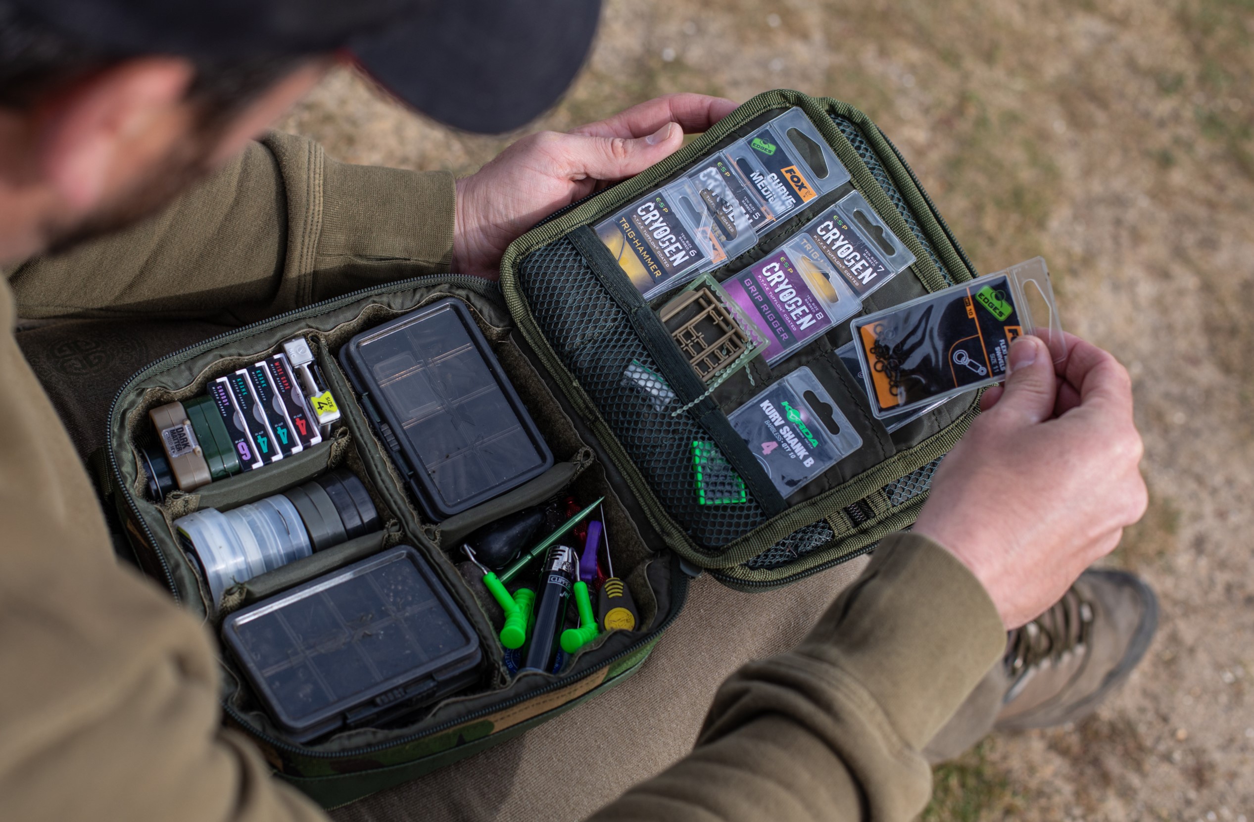 Angelkoffer und Zubehörtaschen gehören zu den wichtigsten Gepäckstücken für den Angler, der am Ufer gerne organisiert ist. Ihre Rigs, Schwimmer, Schnüre und anderes wichtiges Zubehör sind in der Regel die kleinsten Teile Ihrer Angelausrüstung, die leicht verloren gehen oder beschädigt werden könnten, wenn Sie sie alle am Boden Ihres großen Angelrucksacks lagern würden. Zubehörtaschen sind so konzipiert, dass sie die wichtigsten Kleinteile Ihrer Angelausrüstung schützen. Ein Rig-Safe z.B. ist in der Regel eine Tasche aus Kunststoff oder festem Stoff, in der Sie fertige Rigs in geordneten Reihen aufbewahren können. Sie sind so konzipiert, dass sie sich nicht verheddern, und verfügen in der Regel über eine schmale Metallstange, an der Sie Ihren Haken einhaken können.
