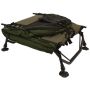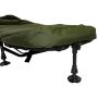 Der Aluminiumrahmen mit 6 Beinen garantiert ein geringes Gewicht und eine hohe Stabilität. Die Doppelgelenktechnologie und das patentierte Beinmechanismus ermöglicht es Ihnen, einfach einen Knopf zu drücken um das Bett einzurasten. Die verstellbare Lendenwirbelstütze erhöht die Bequemlichkeit noch weiter, was dem müden Angler nach einem langen Angeltag hervorragend entpricht. Die drehbaren Schlammfüße passen sich dem Gelände an. Mit den Klettverschlüssen können Sie den mitgelieferten Schlafsack je nach Jahreszeit anbringen oder entfernen.