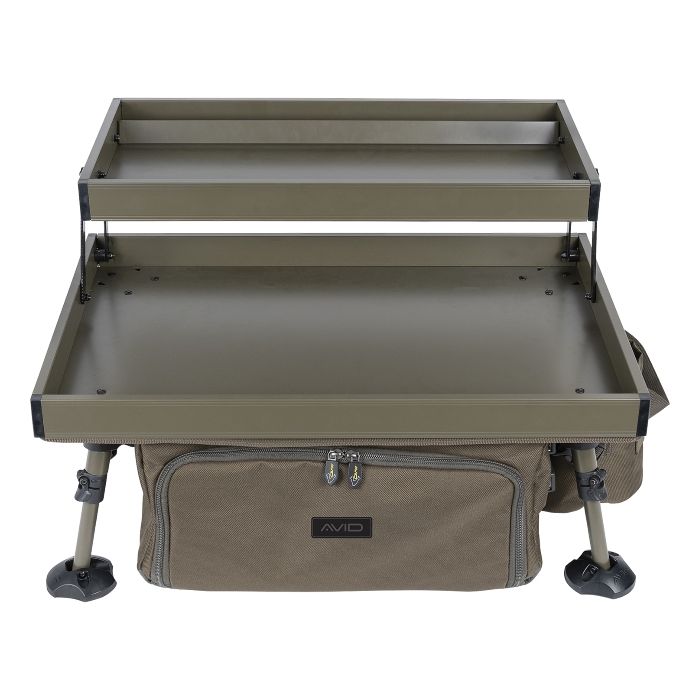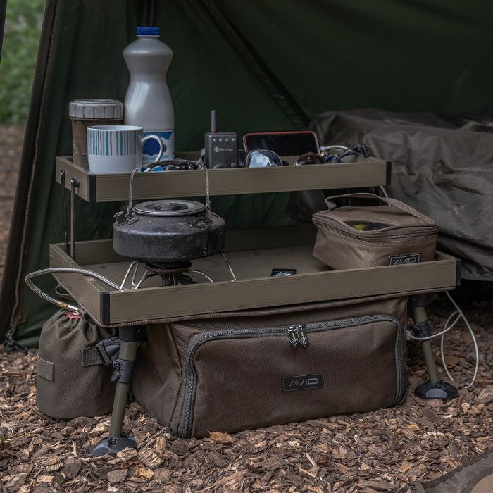 Der Double Decker Bivvy Organisierer ist mit einer zweistufigen Tischplatte ausgestattet, die eine ideale Aufbewahrung von wichtigen Gegenständen ermöglicht. Die Organiser-Tasche, unter dem Tisch, kann größere Angelutensilien in den unteren Fächern unterbringen. Wenn Sie auf der Suche nach einem umfassenden Tackle-Stauraum und einem Zuhause für Ihre wichtigsten Utensilien sind, dann brauchen Sie nicht weiter zu suchen.