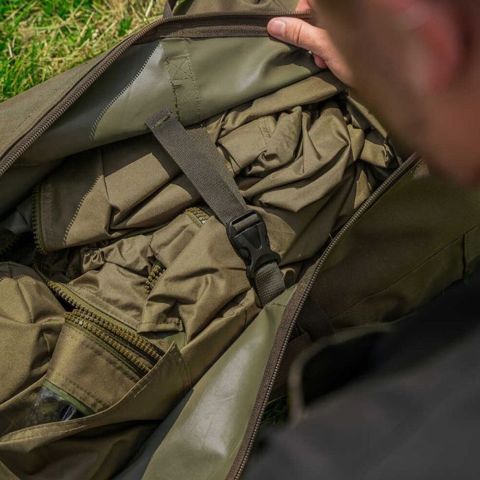 Mit Abmessungen von 270 cm x 195 cm x 140 cm bietet das Exo+ ausreichend Platz für eine Person mit Angelliege und weiterem Zubehör und kann durch die XL PVC Tür Option und die vollständige Innenkabine separat angepasst werden.
