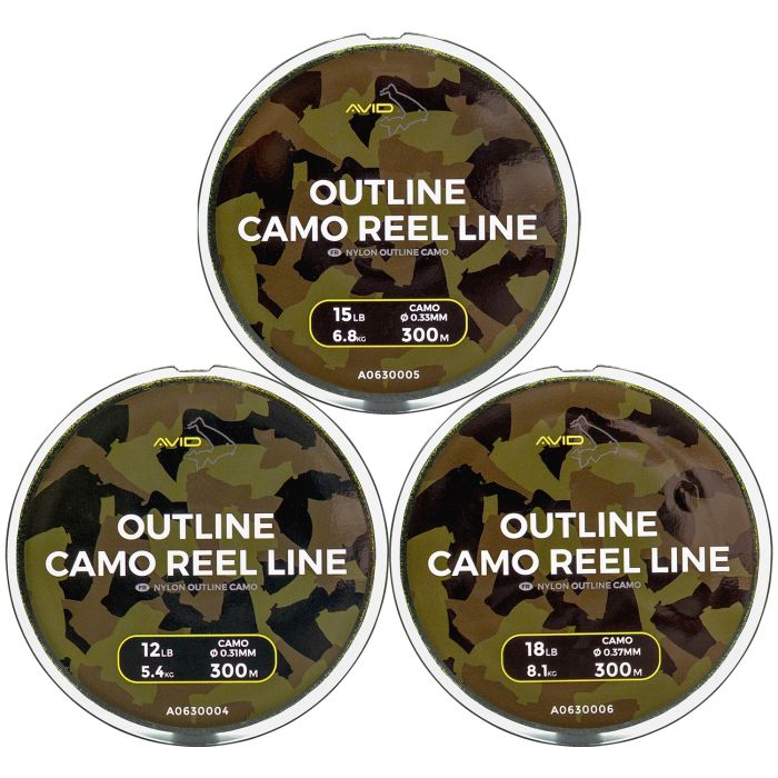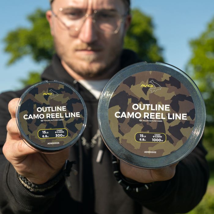 Outline Camo Reel Line ist in zwei Spulenlängen erhältlich, 1000 m, ideal um bis zu 3 Rollen zu füllen, und 300 m Spulen für eine einzelne Rolle.