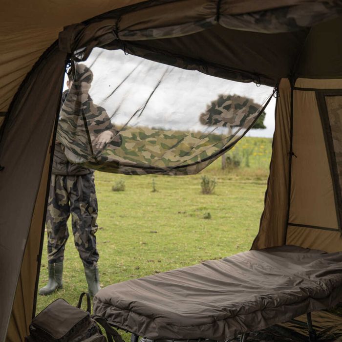 • Ideal für Angler, die ein größeres 1-Personen-Bivvy mit mehr Platz und Kopffreiheit wünschen, oder für die Verwendung als 2-Personen-Bivvy