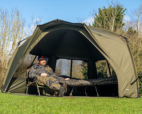 Auch die Aufbauzeit des Angelzeltes wird von der Veranda nicht beeinflusst; es muss nicht separat hinzugefügt werden, sondern kann einfach im selben Tempest-Block wie der Rest des Bivvys eingebaut werden.