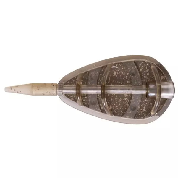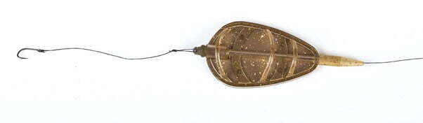Wenn Sie es auf große Friedfische abgesehen haben, ist diese Montage elementar. Das Vorfach sollte nicht länger als 20cm sein. Nachdem das Feederfuttern auf dem Korb platziert wurde, wird der Hakenköder vorsichtig darauf gedrückt. Hierbei gibt es im Wurf keine Verhedderungen und die Fische können sich selbst haken.