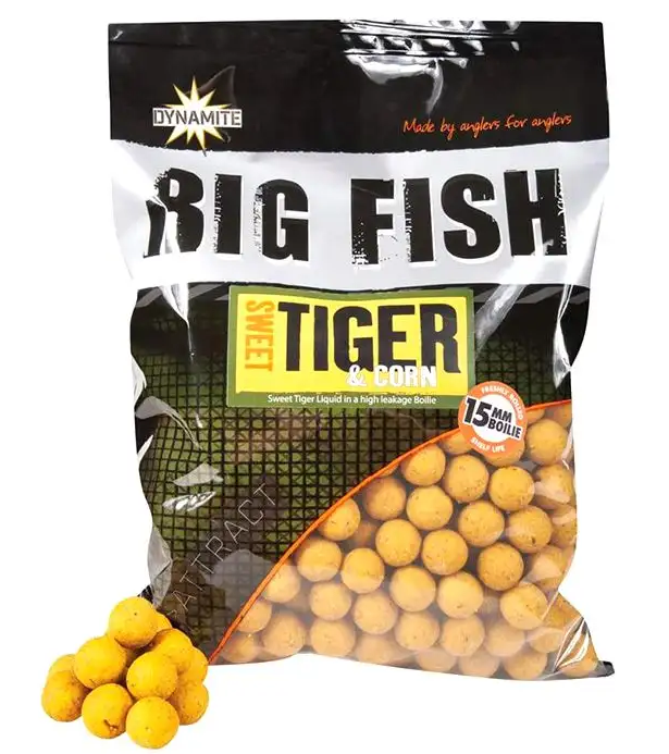 Boilies gibt es in unzähligen Geschmacksrichtungen, Farben und Texturen. Karpfenangler, die mit dem Boilie-Angeln nicht vertraut sind, sollten sich die Zeit nehmen. Die Größe des Fisches, auf den sie angeln wollen, in Relation zum Boilie und Haken in der passenden Größe spielt die entscheidende Rolle. Boilies können zwischen bescheidenen sechs Millimetern und bis zu 26 Millimeter groß sein. Ein Boilie von bis zu zehn Millimeter stellt eine gute Wahl dar, will man bescheiden anfangen. Ein großer Fisch wird vielleicht Ihren kleinen Köder nehmen, aber ein kleiner Fisch wird nicht von einer riesigen Kugel angezogen. Für mittelgroße Fische mit einem Gewicht von bis zu zehn Kilogramm sollten Sie die Größe auf zehn bis 20 Millimeter erhöhen. Farbige Boilies eignen sich hervorragend für trübe Gewässer. Süße Boilies funktionieren gut im Winter. Scharfe Boilies (etwa auf Fisch- oder Schalentierbasis) sind im Sommer die richtige Wahl. In stark befischten Gewässern werden naturfarbene Boilies bevorzugt, weil die Karpfen den ganzen Winter über mit hellen Kugeln konfrontiert waren. Beim Angeln auf Raubfische in großen, offenen Gewässern sollten bunte Köder zum Einsatz kommen. Stellen Sie sicher, dass Sie Ihren Angelplatz mit einigen Boilies ködern. Außerdem sollten Sie parallel einen Grundköder verwenden, um die Einführung von Boilies weiter zu unterstützen. Wenn Sie einen gelben Boilie wie die Dynamite Baits Big Fish, Sweet Tiger und Mais Boilies verwenden, kann eine Mischung mit Mais gute Ergebnisse bringen.