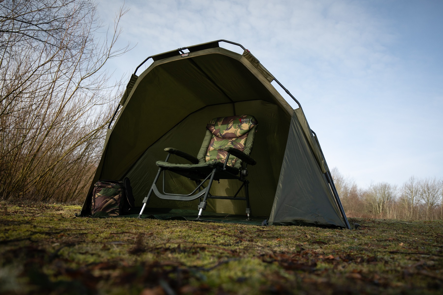 Normalerweise wird das Zelt immer so aufgebaut, dass es den Blick auf das Wasser und die Ruten freigibt. Im Herbst und Winter hingegen sollte es so aufgestellt werden, dass das Bivvy Schutz vor den Elementen gewährt. Befinden sich an Ihrem Angelplatz Büsche oder sonstige Ufervegetation, können diese eine Windbremse sein, der sonst ungehindert auf das Zelt treffen würde. Ändern sich die Bedingungen unterwartet, scheuen Sie nicht davor, Ihr Bivvy den neuen Bedingungen anzupassen und es möglicherweise zu verschieben.