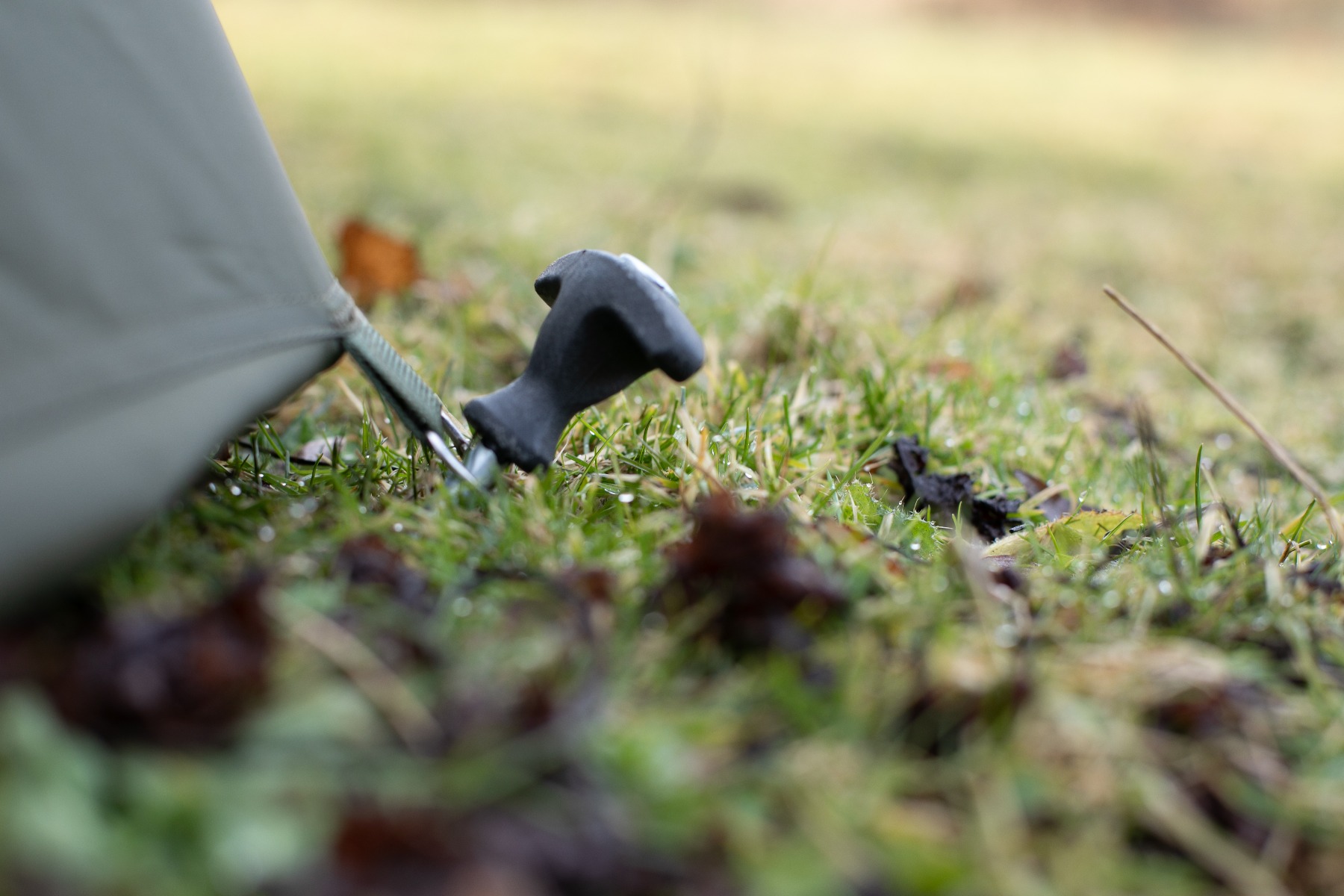 Häufig wird diesem Punkt zu wenig Aufmerksamkeit geschenkt, dennoch ist die Sicherung des Bivvy enorm wichtig! Nachdem Sie ihren Angelplatz bestimmt haben, gilt es, die richtigen Heringe auszuwählen. Es ist dabei ratsam, mindestens zwei Sätze Heringe im Gepäck zu haben. Eine längere Sorte für weiche Böden und eine kürzere für feste Böden. Je nach Festigkeit des Untergrunds können Sie zwischen den Heringen wechseln.