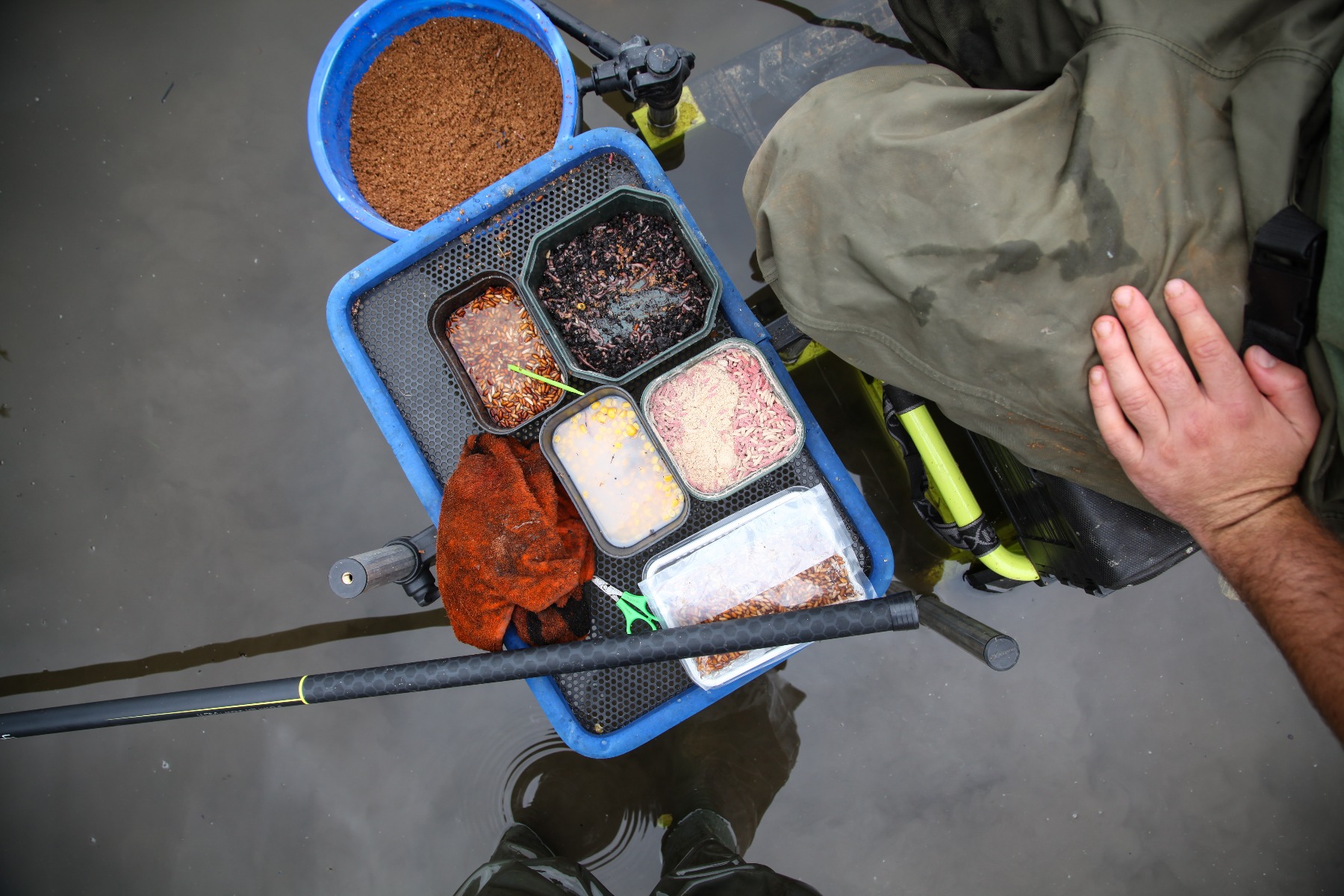 Ein Grundköder, der mit Würmern, Caster, Maden, Pellets und Mais bestückt ist, ist perfekt! Ich nehme gerne eine große Auswahl an Ködern, da dies das Interesse der Fische aufrechterhält und sie dazu bringt, den Grund zu durchwühlen. Durch die Verwendung von Futterpartikeln in verschiedenen Größen bedeutet es auch, dass sie sich nicht auf einen bestimmten Köder fixieren.