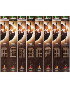 Es gibt viele vorgefertigte Karpfen-Rigs, welche die grundlegenden Komponenten eines Vorfach beinhalten, wie etwa eine Auswahl an Ködern, einen Haken, eine Hakenlänge (entspricht einer Schnurlänge), einen Wirbel, ein Bleisystem, sowie ein Vorfach. Diese Auswahl an vorgefertigten Karpfen-Vorfächern kann noch weitere Komponenten enthalten, um sie für den beabsichtigten Einsatzzweck optimal anzupassen. Zu den vorgefertigten Rigs, die Sie bei Angling Direct kaufen können, gehören: Hinge-Rigs, Blow-Back-Rigs, Hair-Rigs, Chod-Rigs und viele mehr von großen Marken wie Korda, Fox, ESP und Nash.
