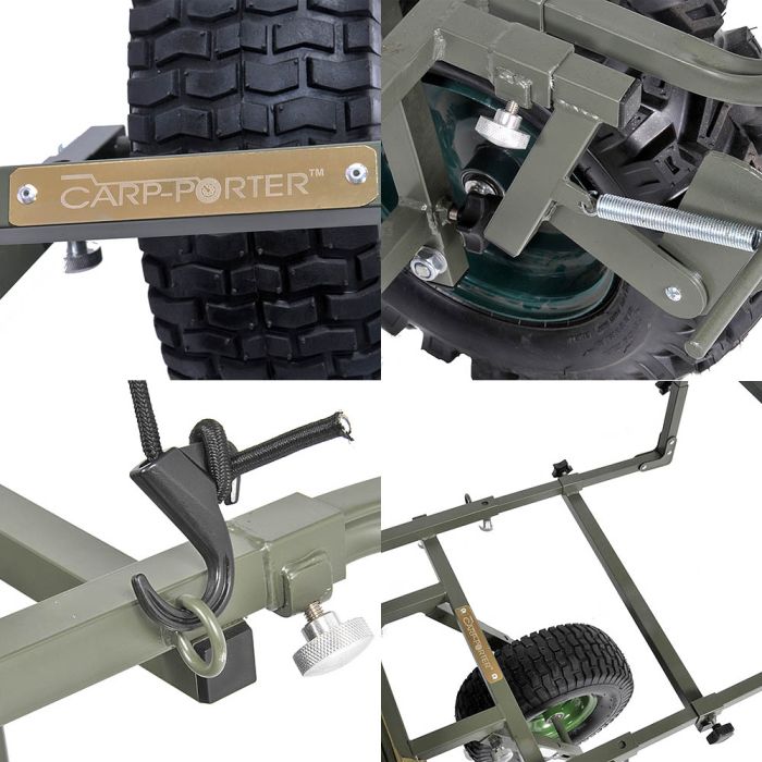 Die Carp Porter Big Boy Karre ist ein robuster, praktischer und benutzerfreundlicher Transportwagen, bei dem wirklich an alles gedacht wurde und der mit knapp 20 kg alle Funktionen bietet, die Sie benötigen - ein perfektes Gewicht für ein so praktisches und leistungsstarkes Angelgerät. UND glücklicherweise lässt sich der Carp Porter Big Boy mit seinen abnehmbaren Rädern in Sekundenschnelle völlig flach zusammenlegen. So passt er in die meisten Kofferräume und falls doch nicht, können Sie ihn, zusammengelegt und ohne Räder, bequem zwischen Vorder- und Rücksitz schieben.