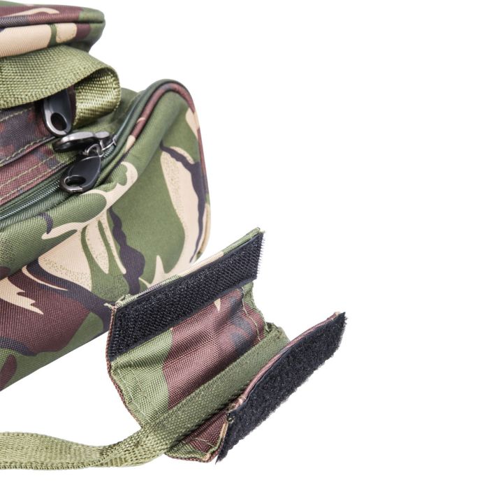 Lebensmittel können problemlos im isolierten Hauptfach mit Reißverschluss transportiert werden, und robuste, umlaufende Reißverschlüsse sorgen für sichere Aufbewahrung und gepolsterte Tragegriffe für einen einfachen Transport. Durch den verstärkten Boden können Sie die Carp Porter DPM Modulare Kompakte Speisetasche einfach neben sich am Ufer abstellen, sehr gut wenn Sie unter einem Brolly fischen.
