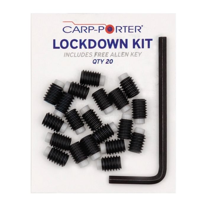 Carp Porter empfiehlt, die Schrauben nicht zu fest anzuziehen, um Beschädigungen zu vermeiden. Mit dem Carp Porter Lockdown Kit kannst du beruhigt angeln, denn dein Barrow bleibt sicher an seinem Platz, egal was die Umgebung bietet.