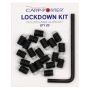 Entwickelt, um die Anforderungen anspruchsvoller Angler zu erfüllen, bietet das Carp Porter Lockdown Kit eine einfache Lösung, um deinen Transportwagen während deiner Angelsessions sicher zu fixieren. Es ist ideal für diejenigen, die ihren Carp Porter Barrow in einer festen Position belassen möchten, ohne zwischen den Sessions ständig Anpassungen vornehmen zu müssen.