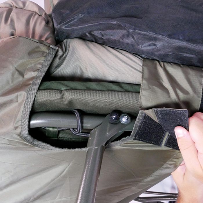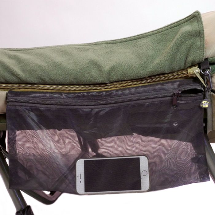 Entworfen für vollständigen Komfort und volle Bewegungsfreiheit, ist dies der perfekte Kauf für Angler, die mit einem offenen Auge und einem Ohr hin zum Bissanzeiger schlafen. Dank der Spanntaschen an Kopf- und Fußteil und dem Gurt in der Mitte, zum Befescannen an der Liege ist das Aussteigen aus dem Schlafsack, ohne Verhedderungen, kein Problem.