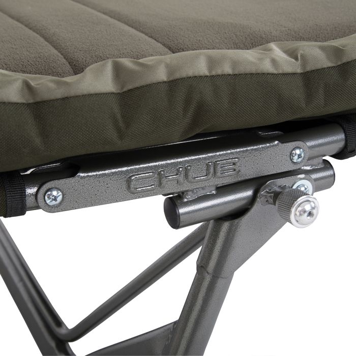 Die durch sechs Beine unterstütze, komplett ebene, extra breite, gepolsterte Matratze die gegen Durchhängen geschützt ist, ist dieser Bedchair ein einzigartiges Lifestyle-Accessoire, das den Bedürfnissen des anspruchsvollsten Langsession-Karpfenanglers entspricht. Er bietet einen kuschligen Kern aus Fleece, der genau das richtige für jene Spätherbstnächte und Mittwinteransitze ist. Ein geformtes Fleecekissen umschmeichelt Ihren Kopf mit weichem und warmem Komfort, während die Faltscharniere es Ihnen ermöglichen, einen Schlafsack im Inneren des Bedchairs zu befestigen, wodurch Sie eine kompakte Zusammenstellung erhalten, die sich für sicheren und effizienten Transport eignet.