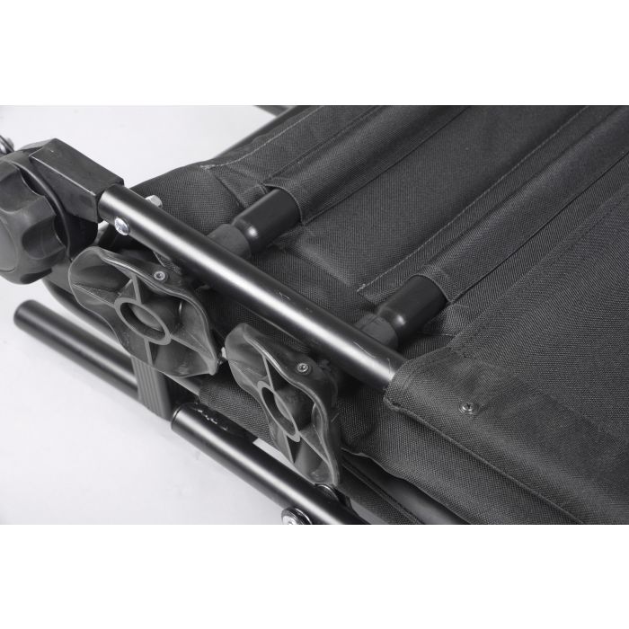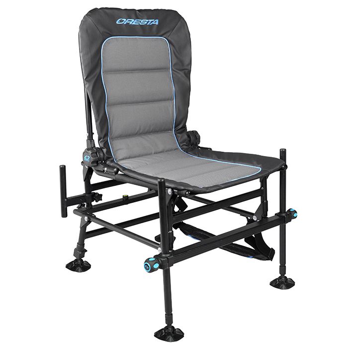 Mit diesem Stuhl erfüllt Cresta die Forderung der Angler nach einem stabilen und vor allem etwas höheren Stuhl. Dies wird durch die ausgeklügelte Rahmengestaltung erreicht. Das Gestell verfügt über einen doppelten Klappmechanismus, so dass die Sitzfläche eine Höhe von 45 cm erreicht, was auch zusätzlichen Platz für Zubehör an den Vorderbeinen schafft. Die Rückenlehne ist mit entfernbaren Armlehnen ausgestattet, an denen Zubehör wie Rutenhalter, Schirmständer oder eine Köderplattform montiert werden können.