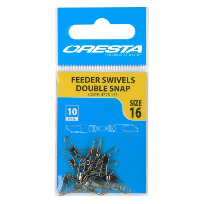 - Cresta double snap feeder swivels are available in 2 sizes 14, and 16