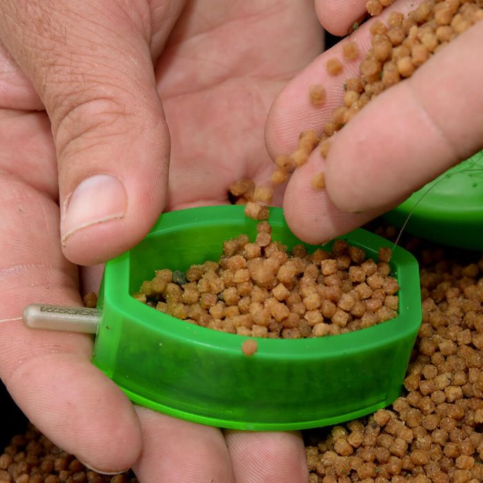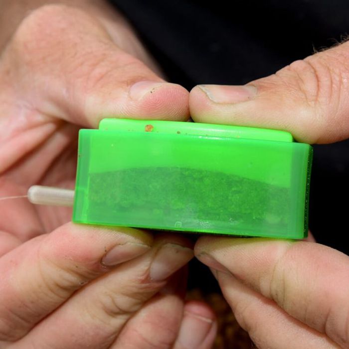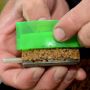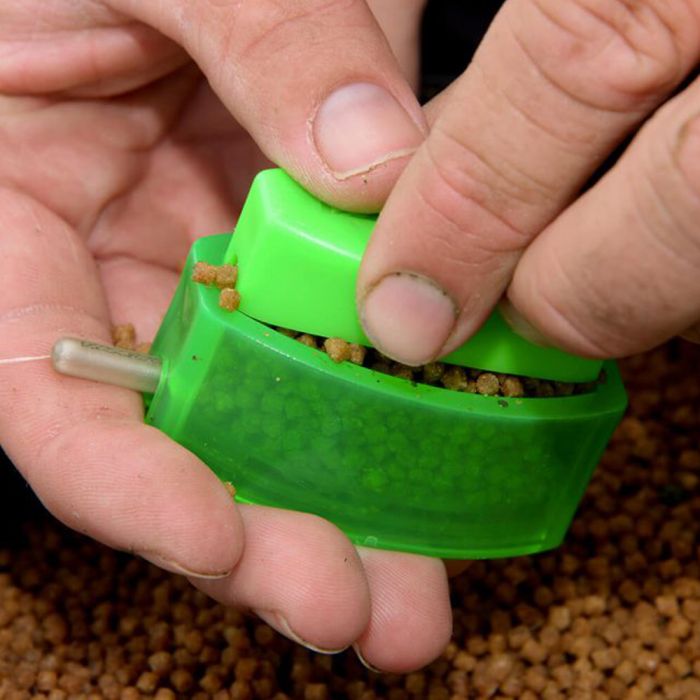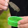 Die In-house entwickelte Feeder Mold macht es extrem einfach die Method Feeder schnell zu befüllen. Schiebe einfach den Ring über die Method Feeder und befülle es mit Groundbait. Füge den Stempel hinzu und drücke es fest zusammen. Drücke nun den Stempel durch den Ring bis die gefüllte Method Feeder unten heraus fällt. Du bist nun bereit zum Fischen!