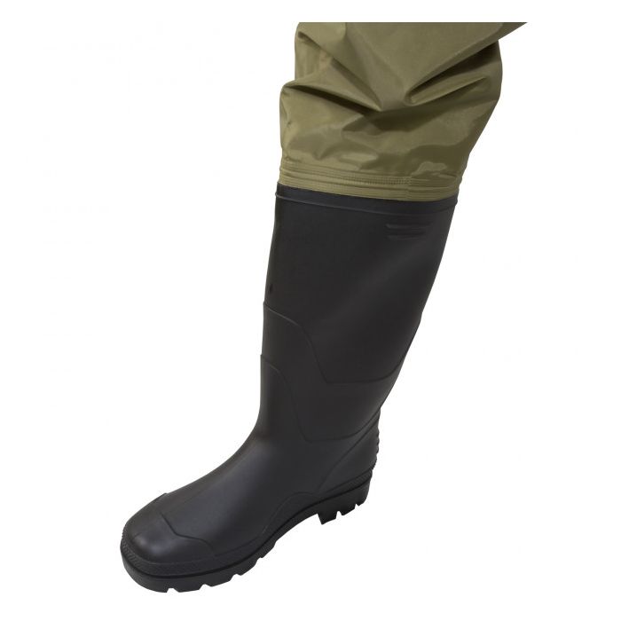 Die Cygnet Wathose hat hochbelastbare schwarze PVC-Stiefel, um sicherzustellen, dass Ihre Füße trocken bleiben, voll verstellbare, elastische Schnellverschluss Träger, einen Gummisaum für eine verbesserte Passform, eine innere Brusttasche, um die notwendigen Werkzeuge griffbereit zu halten, und eine Auswahl an Größen, die Ihrer Schuhgröße entsprechen.