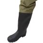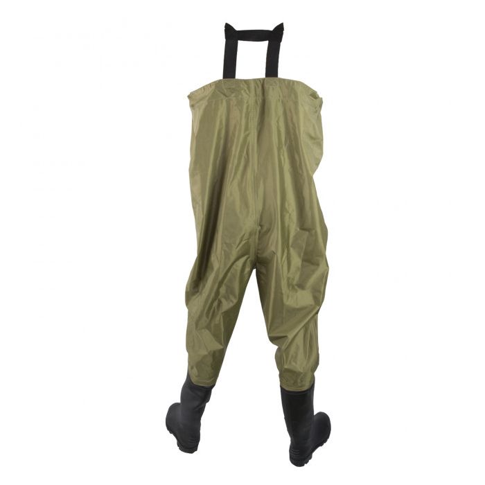 Die strapazierfähigen schwarzen PVC-Stiefel sorgen dafür, dass Ihre Füße selbst bei tiefem Wasser trocken bleiben. Dank der breiten, elastischen und verstellbaren Träger sowie einem Gummibund, der für eine verbesserte Passform sorgt, sitzt die Wathose sicher und bequem. Die praktischen Schnellverschluss-Schnallen ermöglichen ein einfaches An- und Ausziehen.