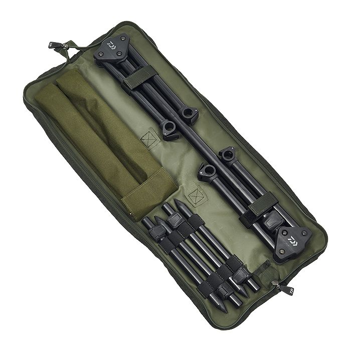 Das leichte, klassische Low-Level Black Widow Rod Pod kann schnell und einfach aufgebaut werden und steht sehr stabil am Boden. Mit 4 einstellbaren Banksticks und Buzzer Bars mit Messinggewinde für 3 Bissanzeiger. Wird mit Transporttasche geliefert.