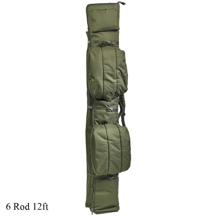 Die Ruten-Einzelfächer lassen sich mit Hilfe von per Klettverschluss befestigbaren Polstern individuell abgrenzenund es wird mit einer wasserabweisenden Regenhülle geliefert, um Ihre Karpfenruten, Rollen und anderes Zubehör bei nassem Wetter zu schützen!