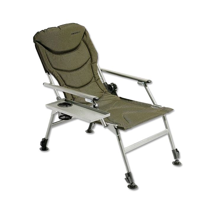 Made from 600D PVC backed polyester it is a tough durable chair. Similar to the Adjustable Chair, the Infinity Specialist features multipoint recliner system as well as fully adjustable legs with mud feet to provide greater comfort and support on uneven surface and wet / muddy banks.