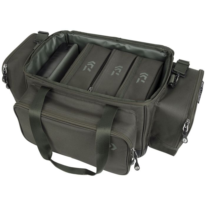 Die Daiwa Infinity System Low Level Carryall ist als Haupttasche für Ihr gesamtes Zubehör und Ihre Kleidung konzipiert. Die gängigsten Karpfenboxen passen perfekt hinein, ebenso wie alle anderen modularen Taschen aus der neuen IS-Serie. Der halbharte Deckel ist ideal zum Binden von Montagen sowie zum Ablegen von Zubehör, das in Griffnähe bleiben muss. Das PVC-Futter lässt sich schnell und einfach reinigen und der PVC-Absatz verhindert Staunässe von unten.