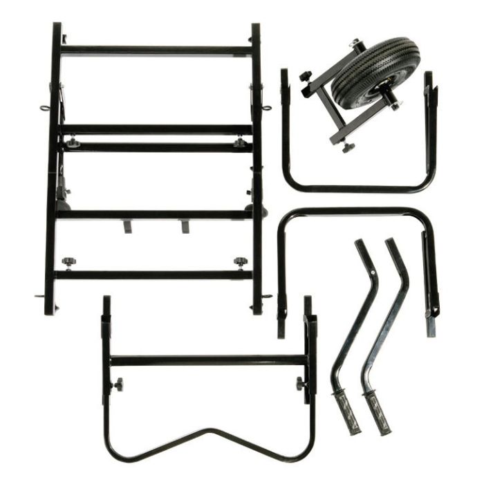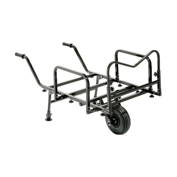 The Infinity Tackle barrow has a powder coated steel frame and a single detachable pneumatic front tyre which makes a fully laden barrow easy to push across uneven ground, even when it's wet and muddy.