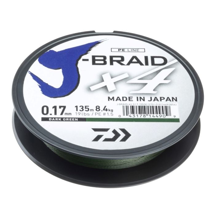 Mit der 4-fach geflochtenen J-Braid X4 bietet DAIWA eine echte geflochtene Hochleistungsschnur zu einem ausgesprochen guten Preis. Die Schnur wird nach höchsten japanischen Qualitäts-Standards sehr eng geflochten und überzeugt in allen Punkten. Die verfügbaren Durchmesser decken nahezu alle Angelarten vom ultraleichten Fischen auf Barsch bis hin zum schweren Meeresangeln auf Heilbutt, Dosch und Co. ab.