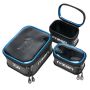 Drei Behälter mit runden, durchsichtigen Deckeln mit Reißverschluss. Die kleinen passen beide in die Größere. Entwickelt für Angelgeräte, Mischköder oder Partikel, entweder trocken oder nass.