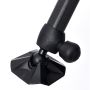 Vorne befinden sich zwei runde Beine, die alle gängigen runden Futterschalen und Zubehörteile mit einem Durchmesser von 36 mm passen. Die Beinhöhe kann individuell eingestellt werden. Der runde Verriegelungsknopf kann auch um 180 Grad zur Seite gedreht werden, damit er nicht im Weg ist. Ein Schutzdeckel auf dem Bein kann entfernt werden - darunter befindet sich ein englisches Schraubgewinde, das zusätzlich z.B. in eine Futterschale o.ä. eingeschraubt werden kann.