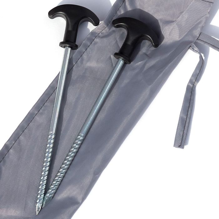 D-Ring Peg Points & Two Pegs Supplied: Secure your umbrella effortlessly with the integrated D-Ring peg points. The inclusion of two pegs allows for quick and easy anchoring, ensuring your umbrella stays in place, leaving you to concentrate on your fishing.